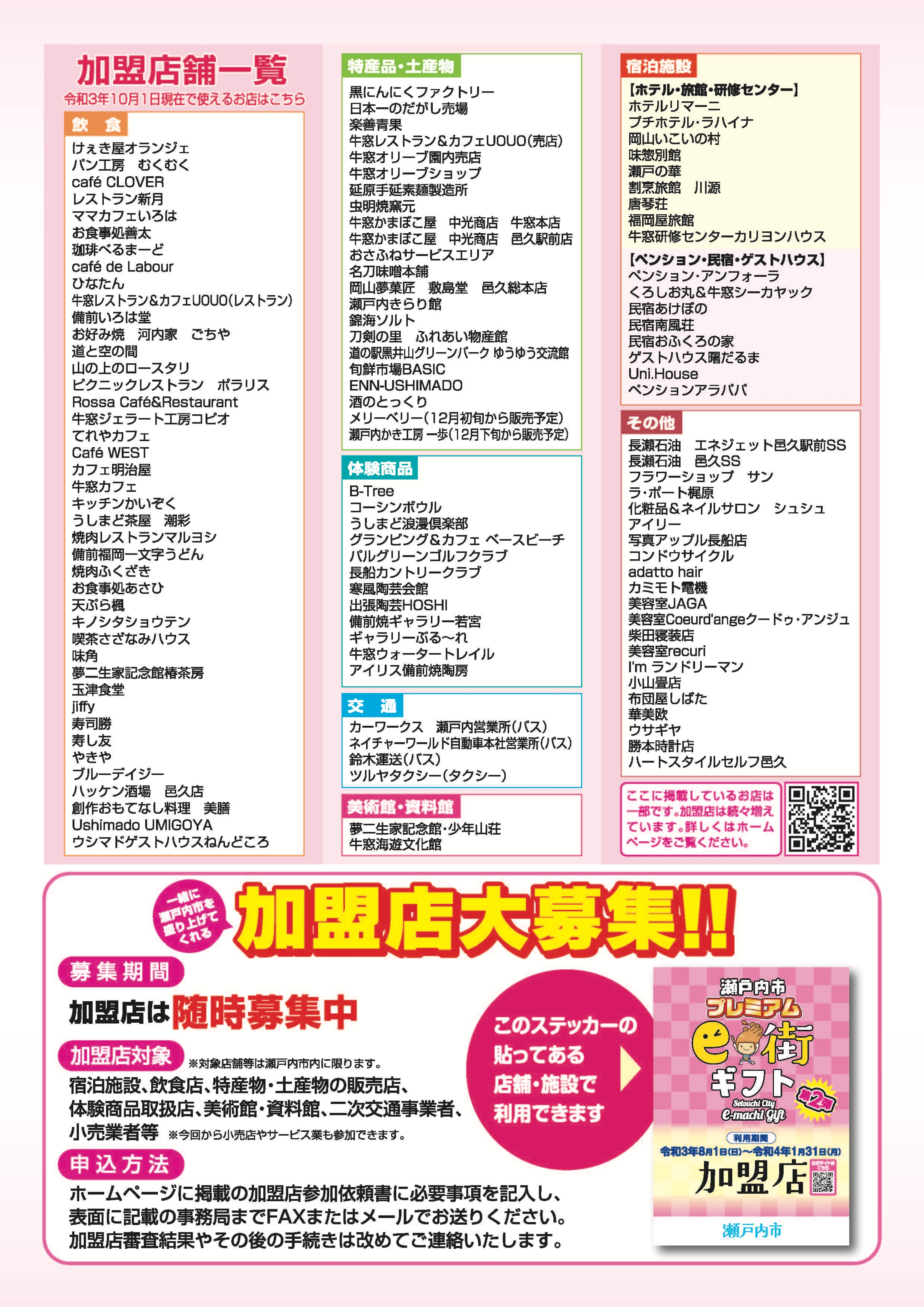| 利用エリア | 瀬戸内市内の加盟店 |